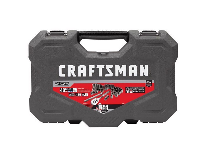 Take on a variety of automotive jobs with this Overdrive Mechanics Tool Set (49 pc.). With sleek finishes, easy-to-read markings, and enhanced geometry, these sockets, wrenches, and ratchets deliver the performance needed for professional and DIY applications. 2.5x Better Access: 180-Tooth dual pawl Mechanism when compared to Craftsman 72 tooth ratchets Enhanced Geometry: Sockets can remove fasteners that are rounded to 70% Everyday Tool Set: Designed to help prevent the rounding of fasteners Quick Size Identification: Large markings on each socket