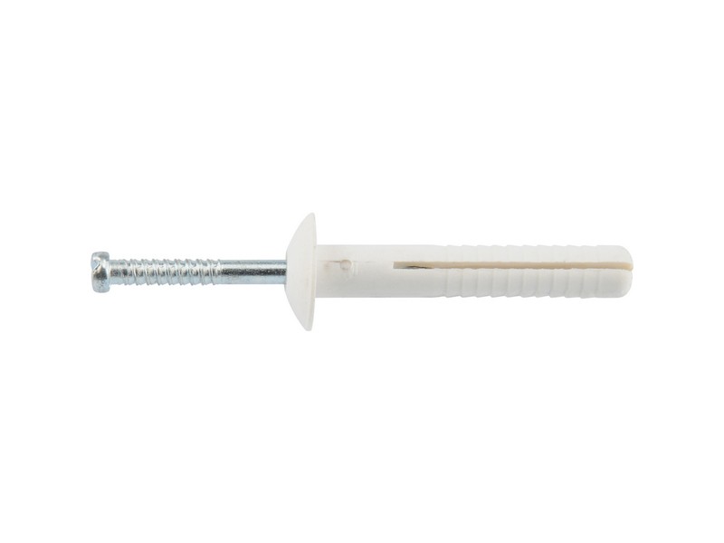 A Truss Head Anchor is a fastening system that consist of two parts. It is installed by inserting the nylon shank into a pre-drilled hole and hammering the head of the nail until it meets the head of the anchor body. Driving the nail expands the split ends and allows the ribs to grip the wall of the hole. * For use with treated lumber Use on brick, concrete and hollow block Building code approved Holds up to 60 lbs. for concrete, 35 lbs. for block, 40 lbs. for brick